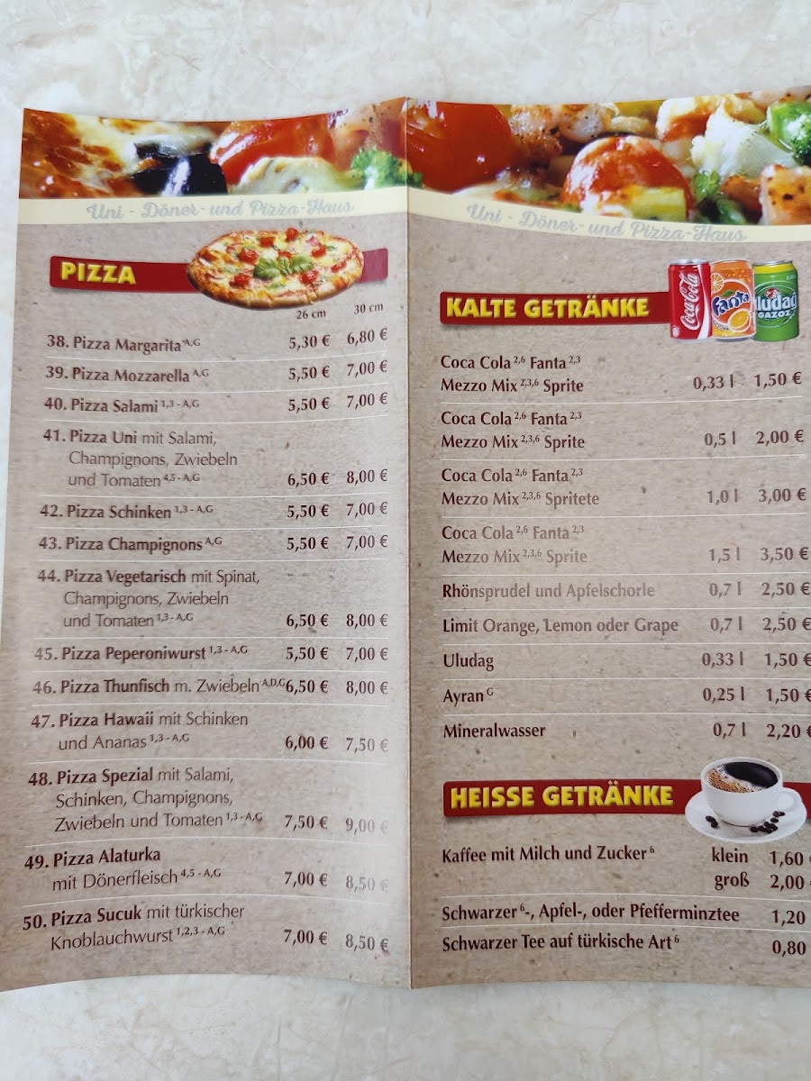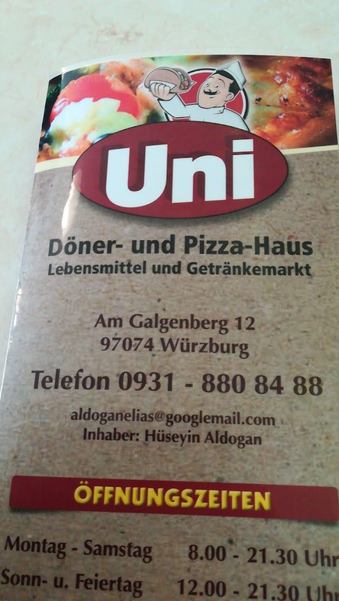 **About Uni Kebab**Located at Am Galgenberg 12 in Würzburg, Germany, Uni Kebab is a vibrant culinary gem that offers a diverse menu, captivating locals and visitors alike. Known for its fresh and delicious dishes, this eatery serves crowd-pleasers like the Vegetarian Falafel Roll and juicy meat wraps. With rave reviews highlighting the tender meat and flavorful vegetables, it's clear that quality is a top priority. The lively atmosphere, combined with outstanding customer service, makes Uni Kebab a must-visit destination for food lovers. Whether you crave a hearty falafel sandwich or a delightful pizza, Uni Kebab guarantees satisfaction with every bite.